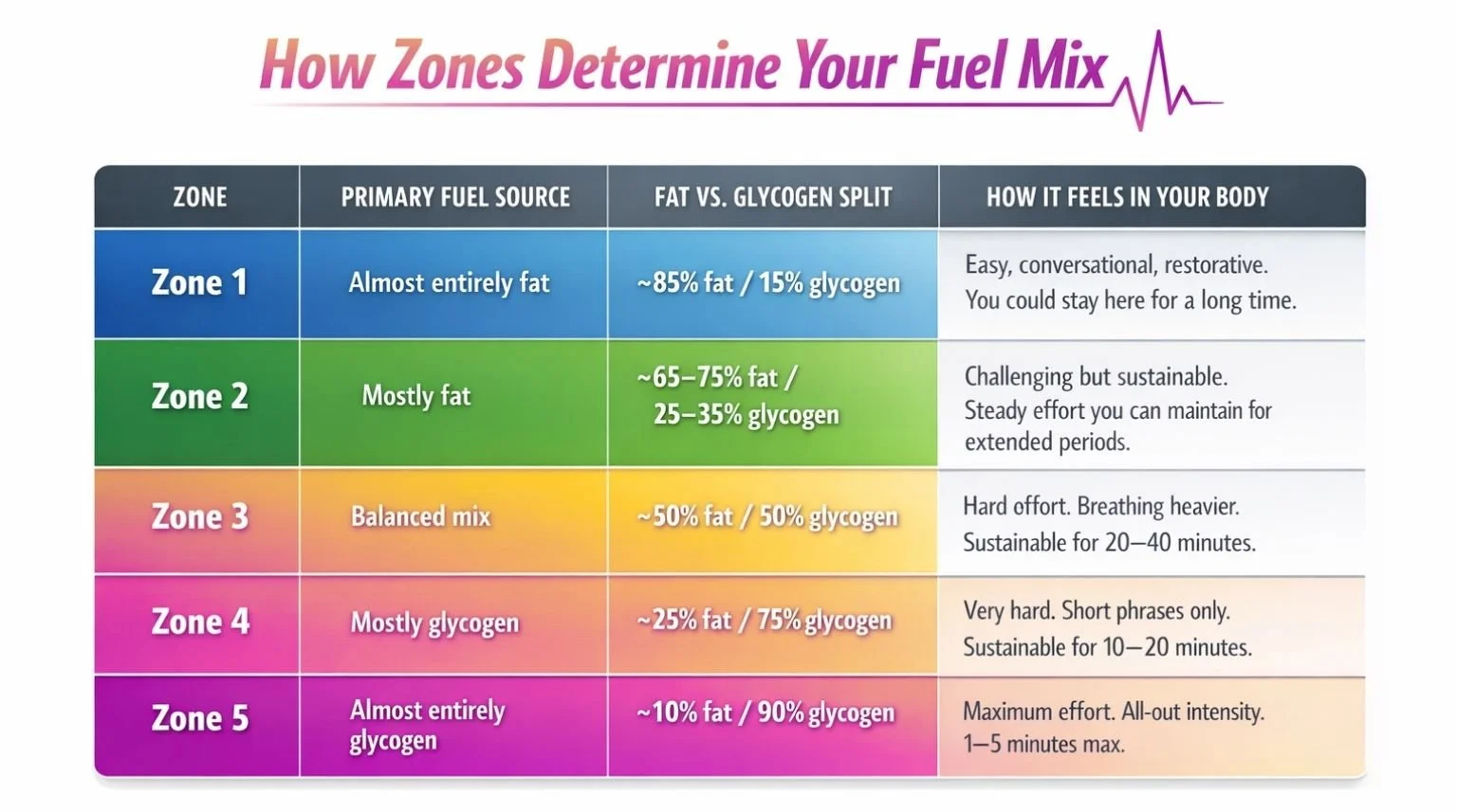 Zone 2 is the fat-burning sweet spot — you burn the highest amount of fat per minute while building the metabolic machinery that makes you a better fat-burner 24/7.