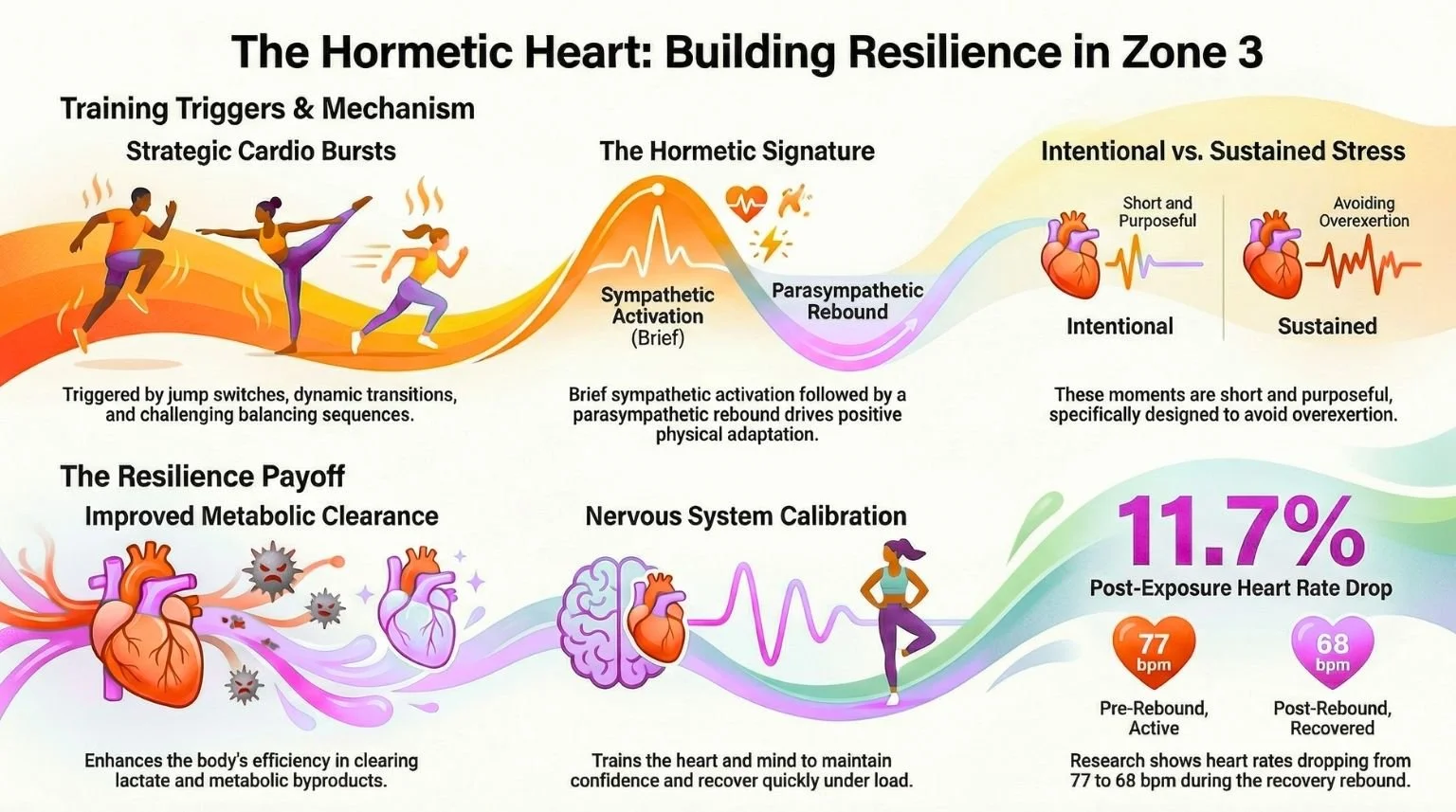 Brief Zone-3 exposure builds stress resilience when followed by recovery — a classic hormetic response that improves your ability to shift between fuel systems (7).
